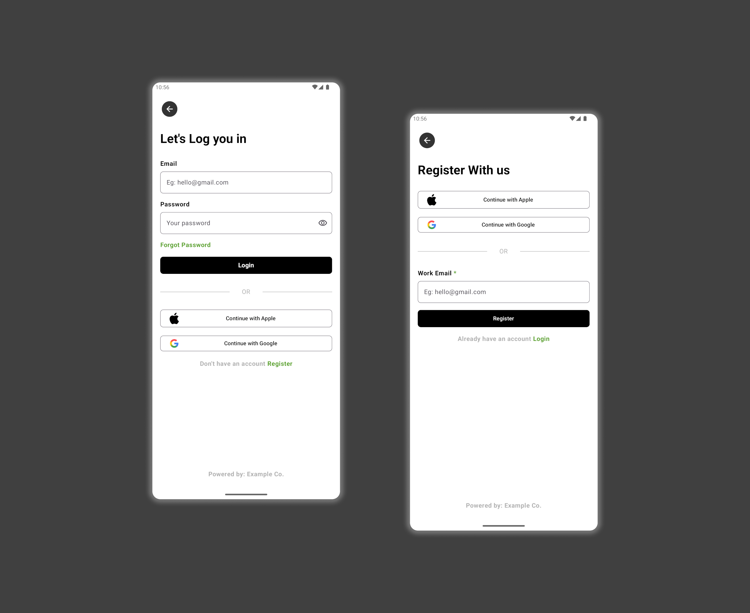 Presenting a sleek and modern Login and Register screen design for Android apps. Focused on minimalism and user accessibility, this UI features: